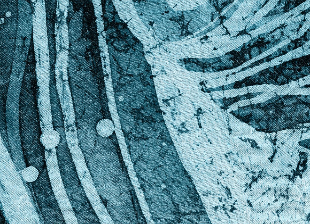 Този дизайнерски тапет е абстрактна композиция в студени цветове, която напомня за свежестта и блясъка на градските улици след отминал пролетен дъжд.