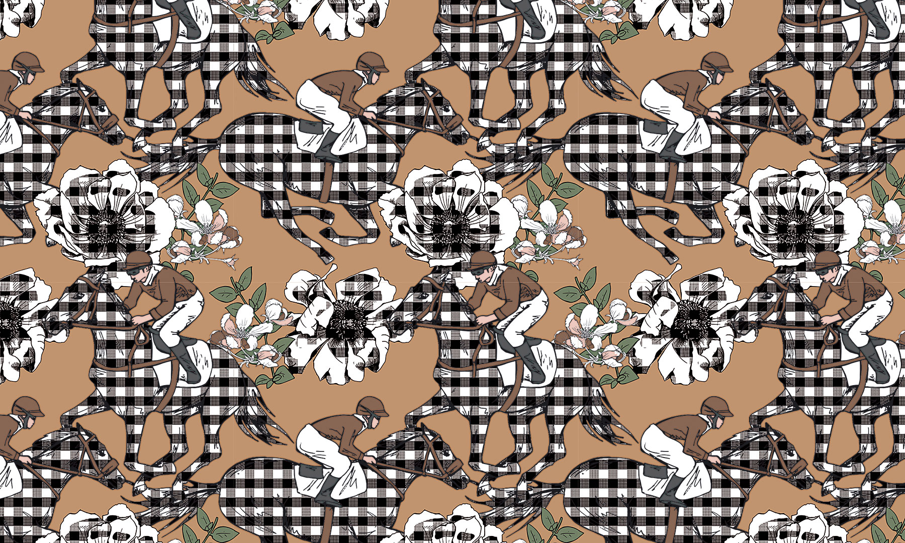 Дизайнът е комплимент към любителите на конната езда като мултиплицира фигурата на жокей, яздещ кариран кон на фона на стилизирани пролетни цветя и черно-бяло каре. За почитателите на винтидж атмосферата, конния спорт и природата.