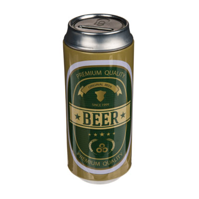 Касичка във форма на кен за бира.