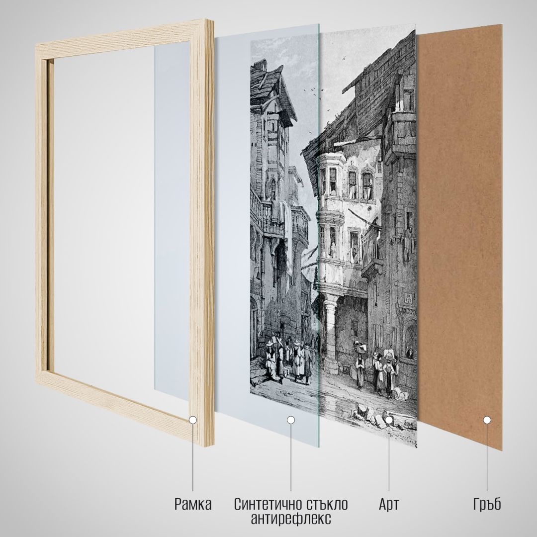 Постерна рамка с олекотено, синтетично, анти рефлексно стъкло 50х70см с цвят натурално дърво
