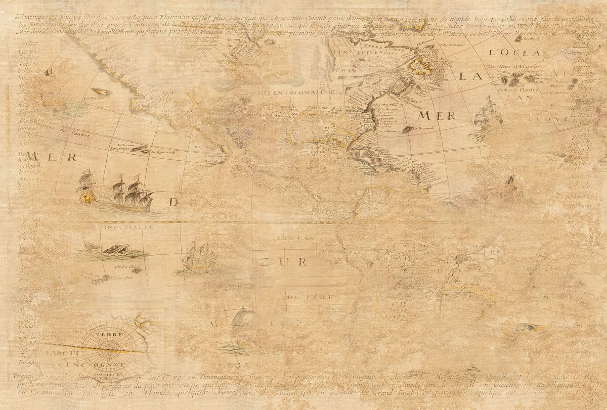 Дизайнът на този арт тапет е колаж от антична карта на света и стари ръкописи на фона на стена с вековна мазилка. Подходящ е за почитателите на историята и непреходното. Изработва се по индивидуален размер.