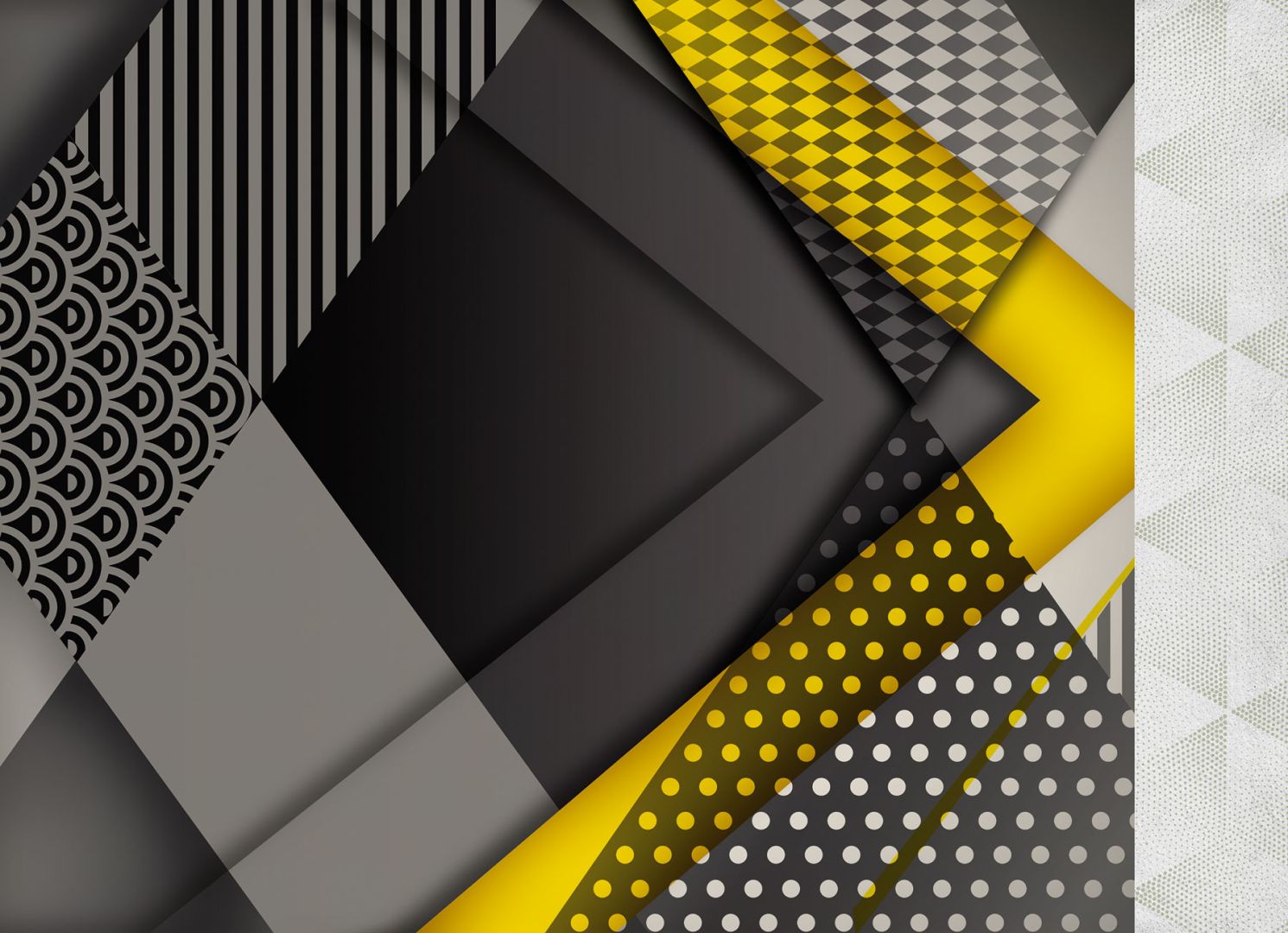 Вдъхновен от декоративни елементи този дизайнерски тапет превръща стените в геометрична картина. Триъгълниците на ромбове, точки и райета, в съчетание с облите капковидни елементи създават завладяващ ефект. Минималистичният избор на цветове създава изисканост и строгост и едновременно с това, предизвиква въображението. Подходящ за офис, лични работни и обществени пространства.