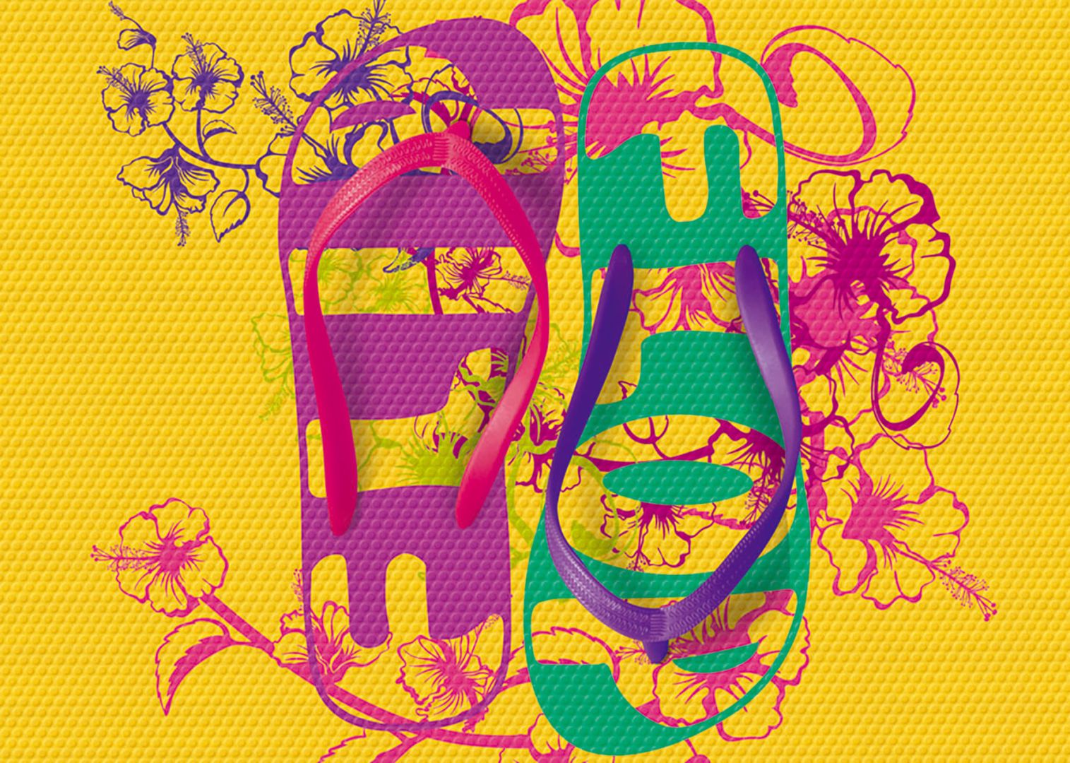 Това е композиция със стилизирани цветя и джапанки за пораснали момичета, които искат да се разделят със света на розовите панделки и куклите и се отдадат на лятно настроение и приключения.
