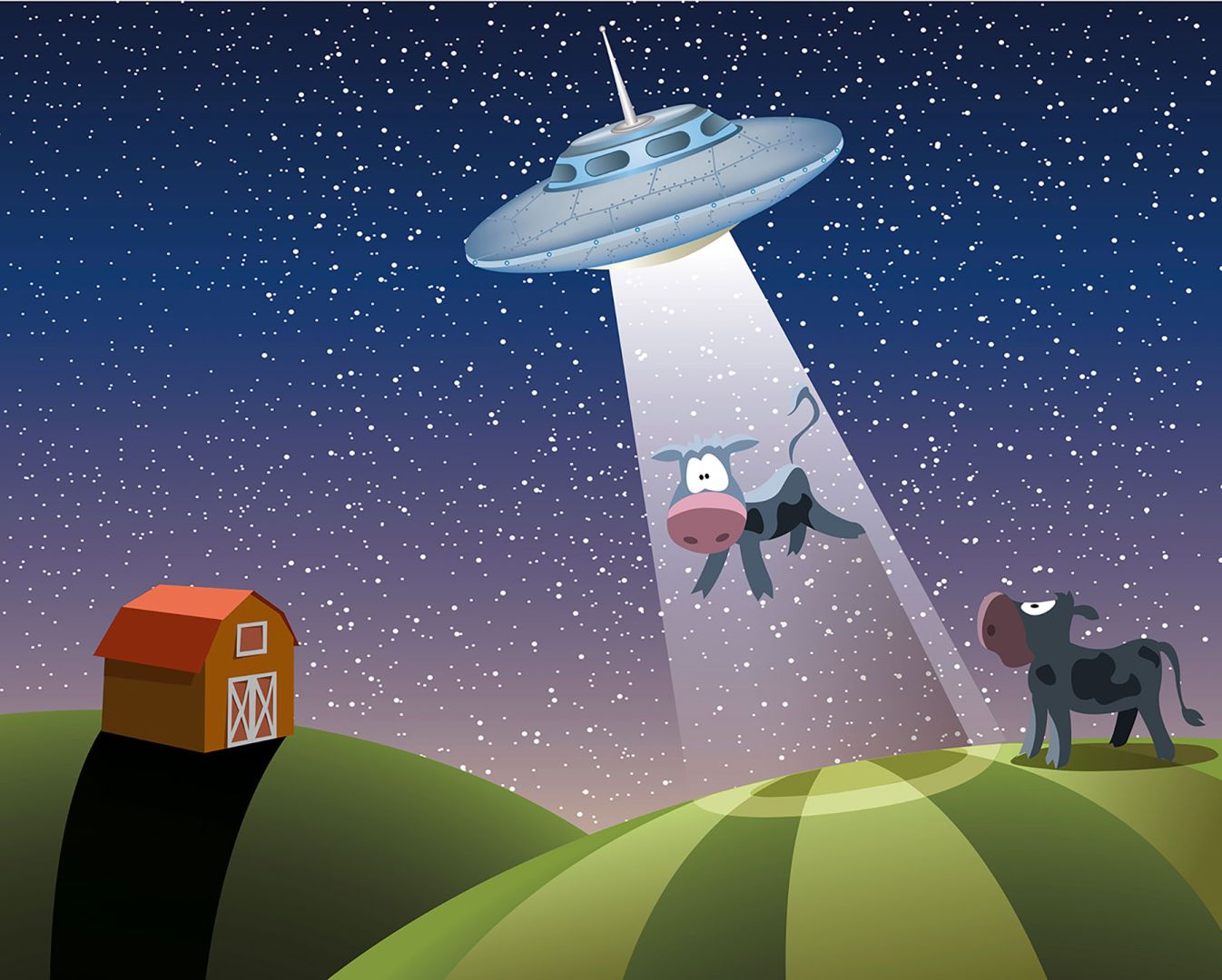 Забавна рисунка на крави пришълци, спуснати от летяща чиния за стаята на всеки любопитен и взиращ се към безкрайния космос малчуган.