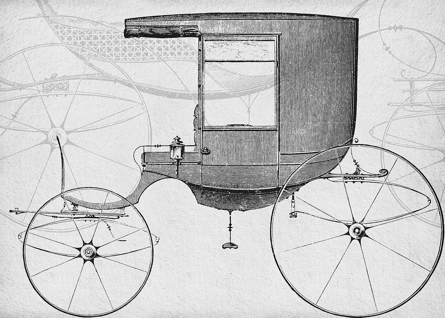 Графичната рисунка на винтидж конска карета от края на 19 век е въздействащо декоративно решение за обществени и арт пространства.