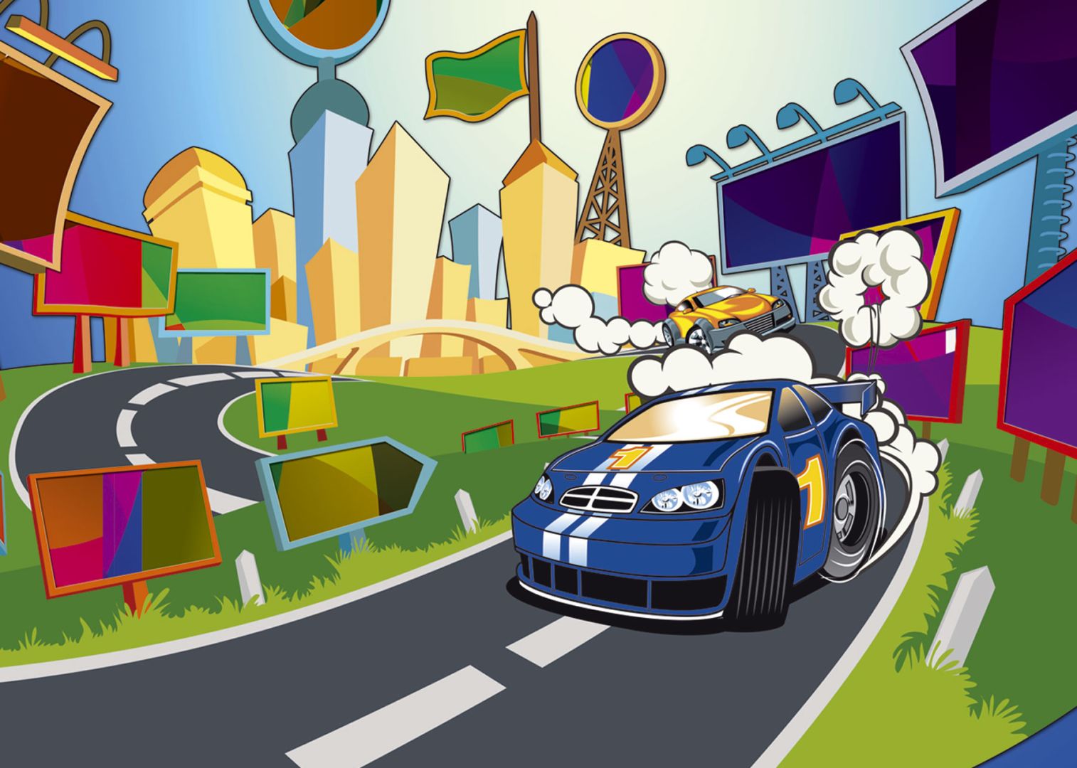 Тапетът е рисунка на автомобилно състезание в стила на детските анимации и е атрактивно допълнение към стаята за игра и почивка на любимия малчуган.