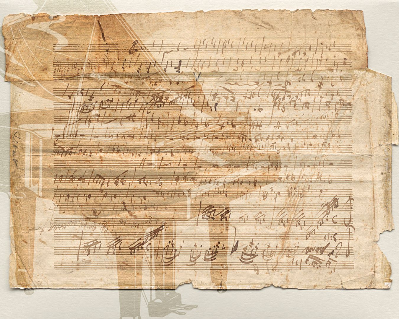 Стар нотопис - партитура на гениалния композитор Лудвиг Ван Бетховен е в основата на този елегантен тапет, който ще заинтригува почитателите на класическата музика и финеса. Една по-нестандартна идея за декориране на пространството.